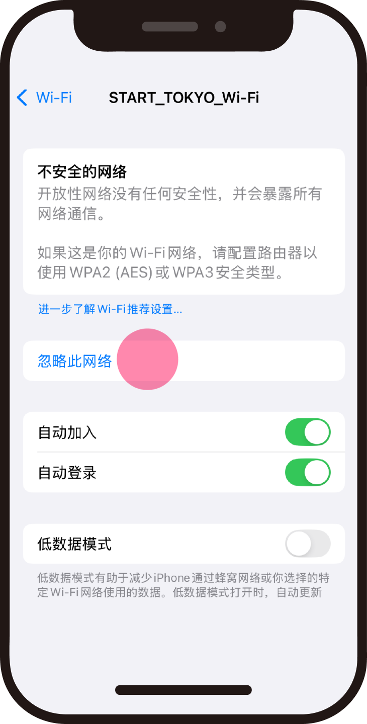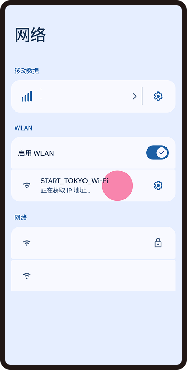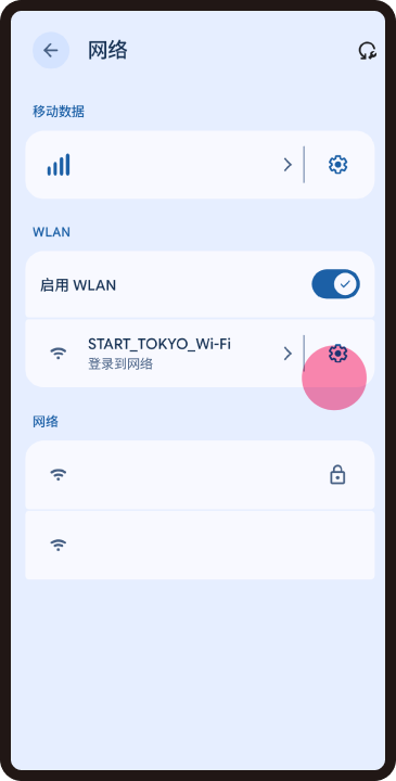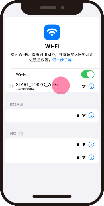 即使身处贴有Wi-Fi贴纸的区域,若设备仍无法连接Wi-Fi,表示设备当前未检测到无线信号。 请尝试关闭并重新开启Wi-Fi设置,在部分情况下可恢复正常。 ※具体操作因设备型号而异。