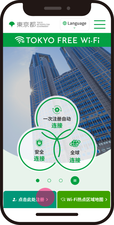 SSID「TOKYO_FREE_Wi-Fi」利用国际无线局域网漫游平台,通过无线通信加密提供高安全性,并支持自动连接至兼容的Wi-Fi热点。支持的热点均张贴有标识贴纸。(部分设施可能未张贴标识贴纸)