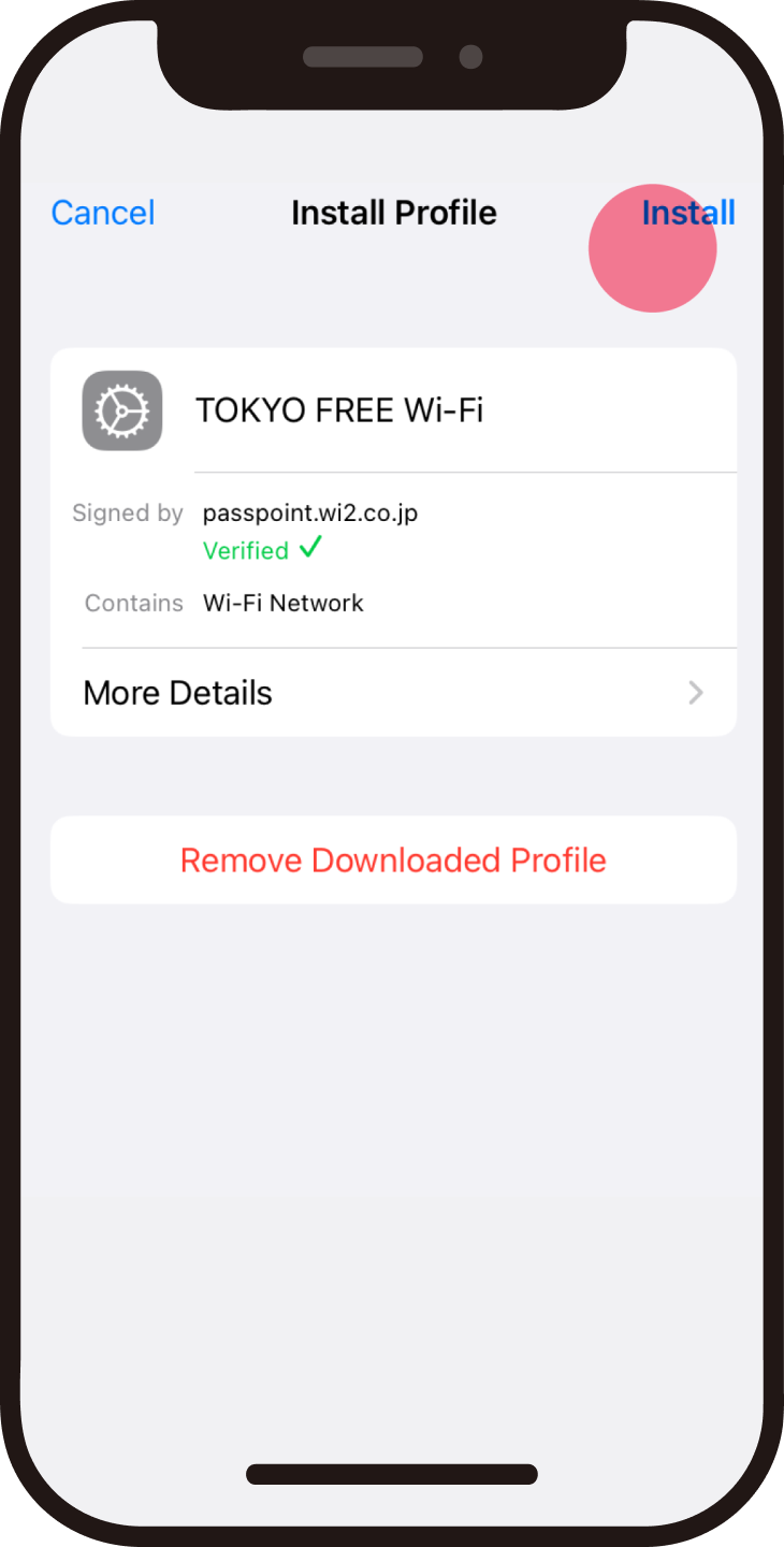 To use OpenRoaming-compatible Wi-Fi, you need to install the configuration file (profile) on your device. (It takes about 5 minutes.)
