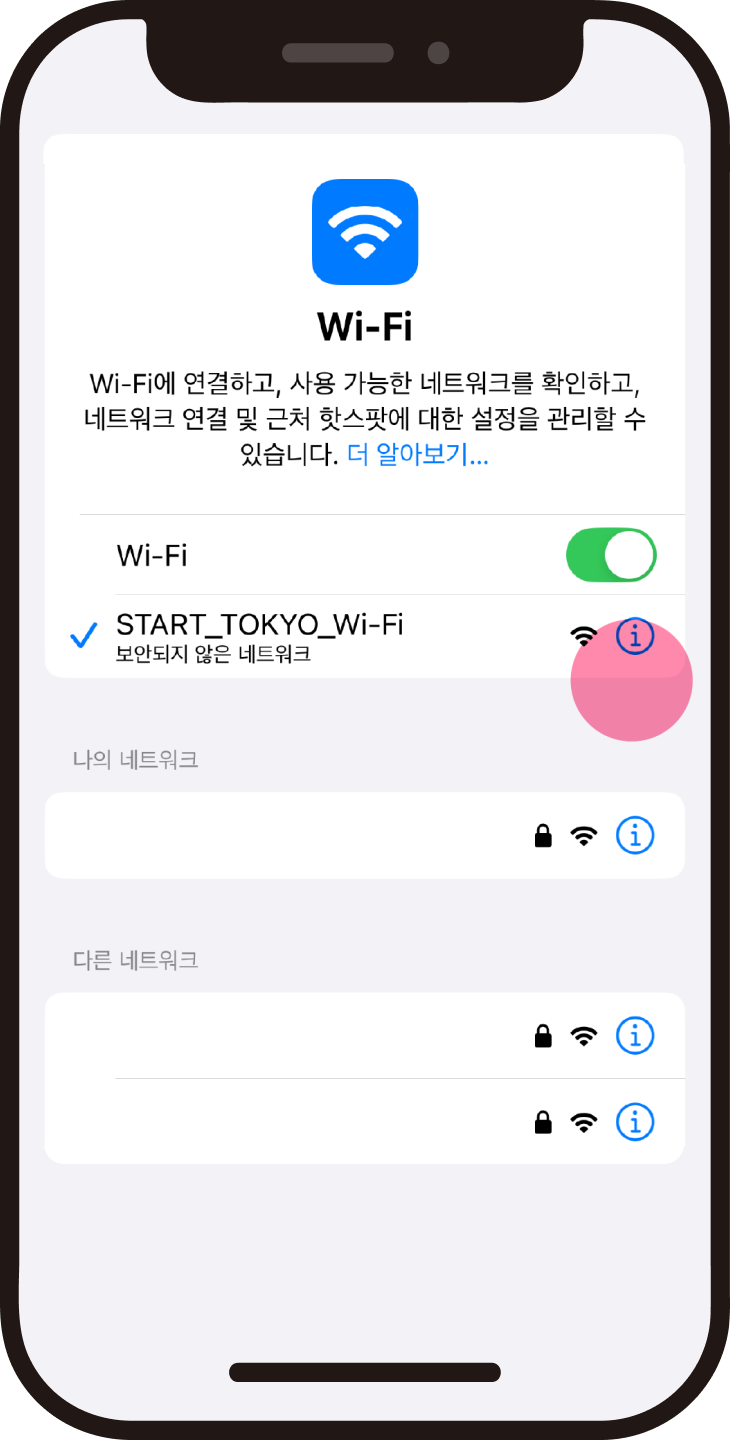 이용 가능한 Wi-Fi 스팟에서는 이 녹색 스티커를 눈표로 삼아주세요.